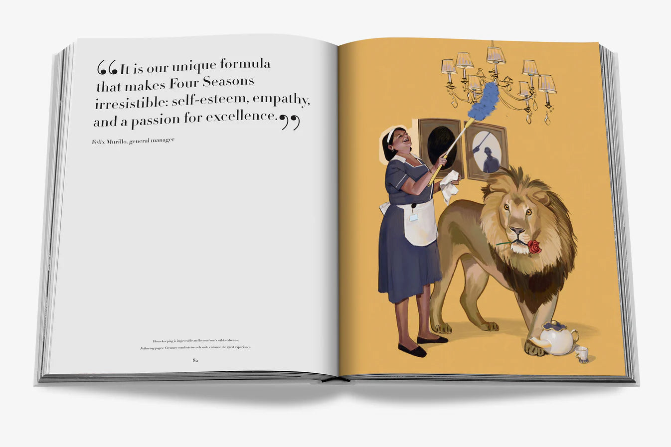 Each Four Seasons destination is a distinctive experience, yet all properties are united under the philosophy that exceptional personal service and savoir faire can make a single stay life-changing. It is the spa manager, the executive chef, the astronomer, the concierge, the sommelier, the florist, and the myriad other star team members working behind the scenes who make up the true identity of Four Seasons, taking the time to connect with guests and turn dreams into reality every day. Artist Ignasi Monreal’s sensational paintings capture these people, and the essential details they make it their mission to perfect, that place Four Seasons hotels and resorts in a class all their own.