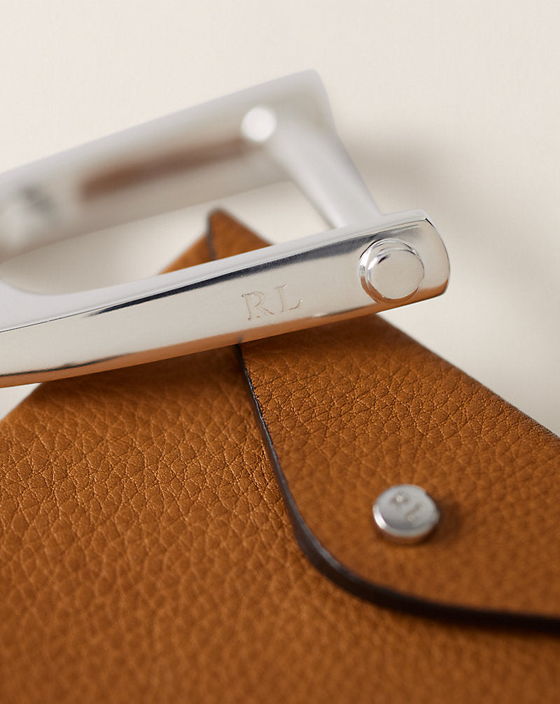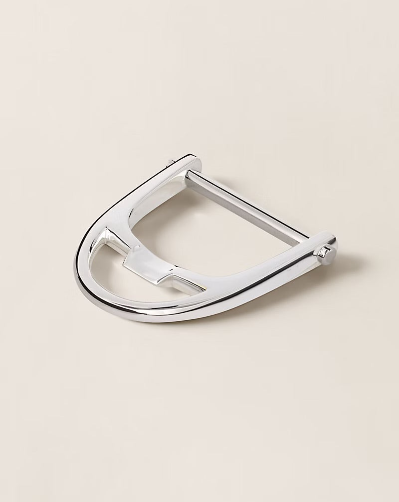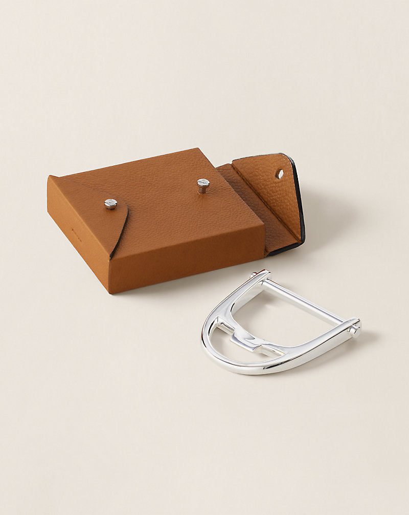 Presented in an elegant leather case, the Garrett bottle opener is crafted with silver-plated brass in an equestrian-inspired stirrup silhouette.